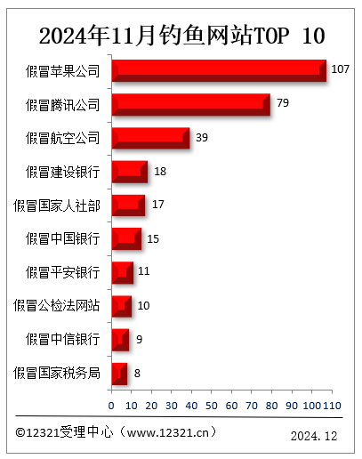凭证12321会聚不良与垃圾信息举报受理中心(www.12321.cn)接到网民投诉的短信、邮件、网站等信息欧洲杯正规下单平台,2024年11月,被投诉的垂钓网站前十名如下: